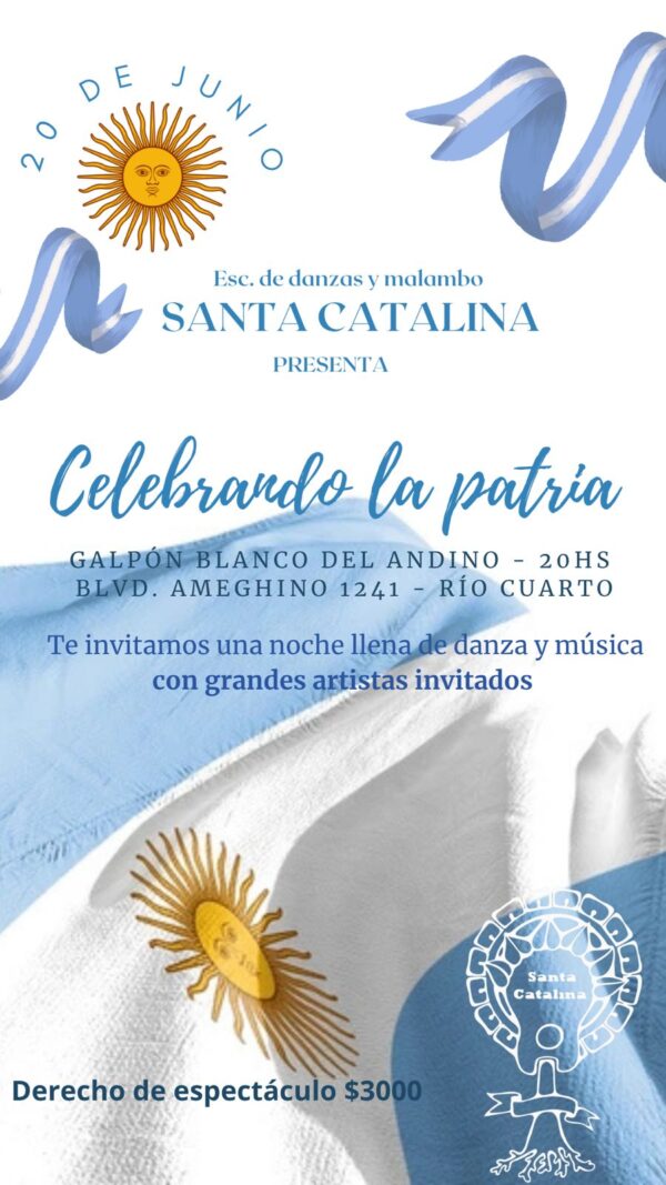 La Escuela de Danza y Malambo Santa Catalina, presenta el espectáculo Celebrando la patria con la participación de artistas invitados.