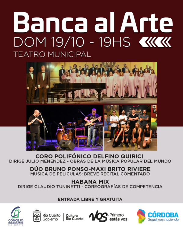 Este domingo 19 de octubre desde las 19 horas en el Teatro Municipal “Carlos Alberto Granado” se realiza una nueva edición de Banca al Arte que como es habitual se ofrece con entrada libre y gratuita.
