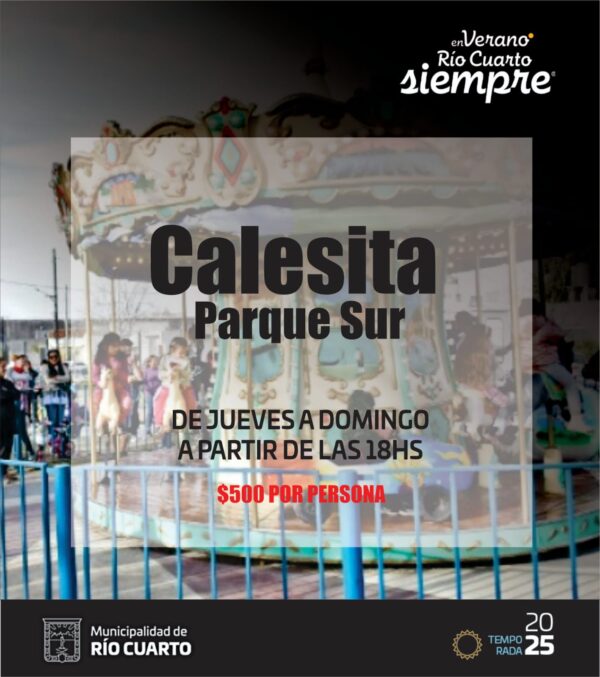 Todas las semanas de jueves a domingo a partir de las 18hs. podes disfrutar de la calesita en el Parque Sur.