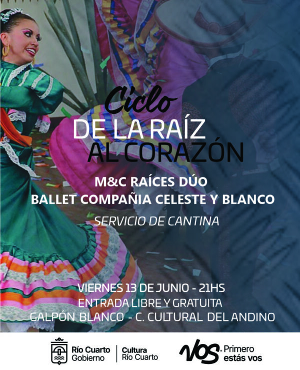 En la continuidad del ciclo folklórico local se presentan M&C Raíces Dúo y Ballet Compañía Celeste y Blanco. Servicio de cantina.
