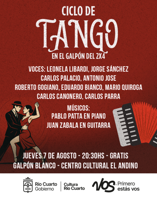 Continúa el ciclo tanguero con las voces de Leonela Libardi, Jorge Sánchez, Carlos Palacio, Antonio Jose, Roberto Gogiano, Eduardo Bianco, Mario Quiroga, Carlos Canonero y Carlos Parra, acompañadas por los músicos Pablo Patta en piano y Juan Zabala en guitarra.