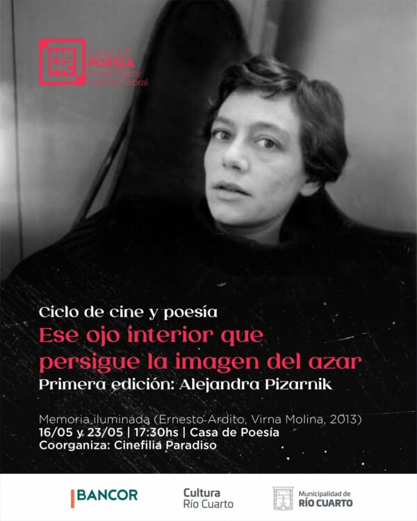 Comienza el Ciclo de Cine y Poesía coordinado por Cinefila Paradiso. Primera edición: Alejandra Pizarnik. Memoria iluminada (Ernesto Ardito, Virna Molina, 2013).