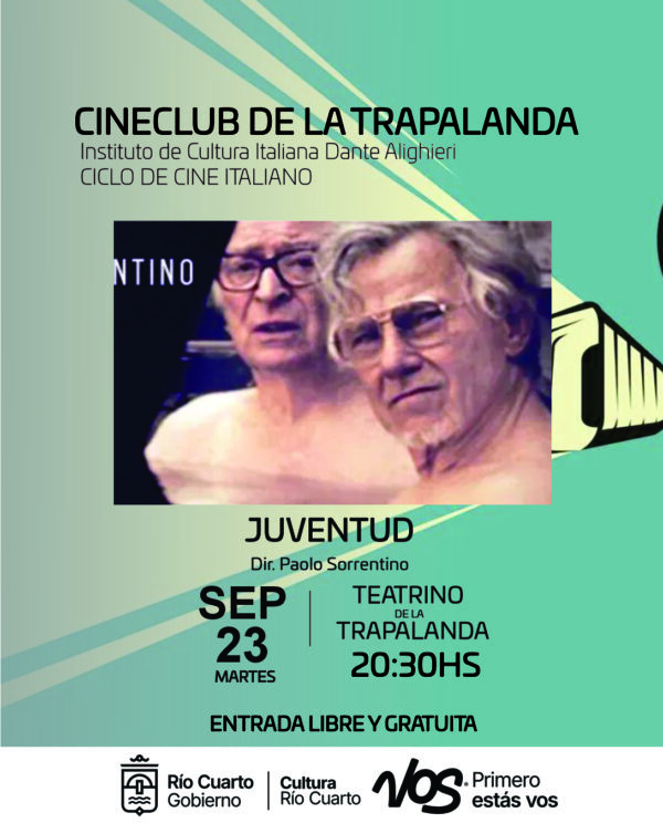 En el Cineclub de la Trapalanda, en conjunto con el Instituto de Cultura Italiana Dante Alighieri, en el ciclo de Cine Italiano, se proyecta la película dirigida por Paolo Sorrentino (Italia – 2015), con las actuaciones de Michael Caine, Harvey Keitel, Rachel Weisz, Jane Fonda.