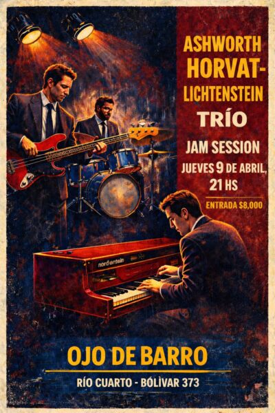 Este jueves 9 de abril a 21hs. suena la Jam Session con el trío Ashworth-Horvat-Lichtenstein. Entrada gral. $8000.
