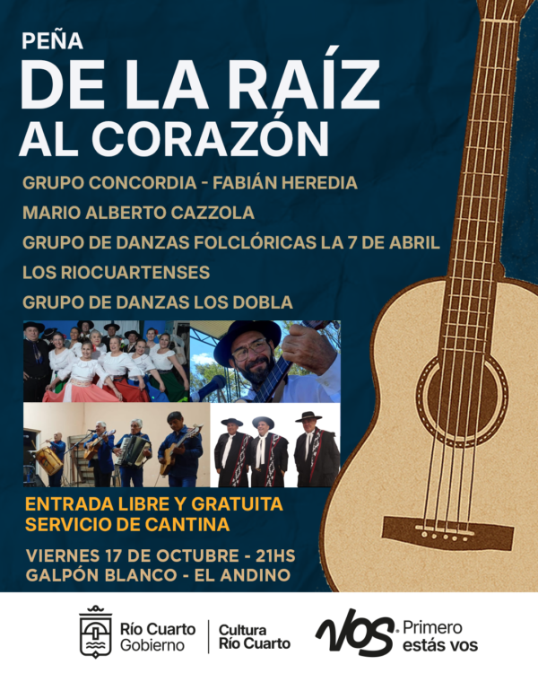 En la continuidad de la peña folklórica se presentan el Grupo Concordia, Fabián Heredia, Mario Alberto Cazzola, Grupo de Danzas Folclóricas la 7 de Abril, Grupo de Danzas Los Dobla y Los Riocuartenses. Esmerado servicio de cantina.