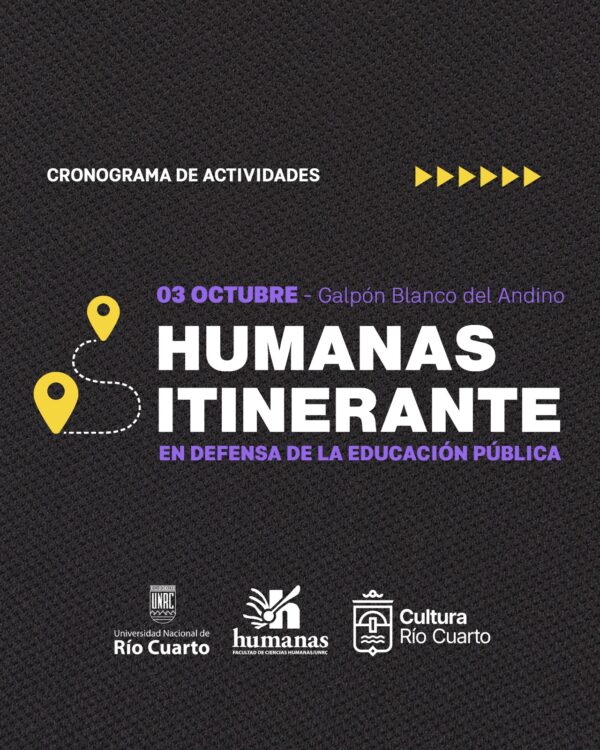 Viernes 3 de octubre. De 9 a 23hs. Galpón Blanco del Andino. 21hs. Entrada gratuita. Se realiza la segunda edición de Humanas Itinerante, un proyecto de gestión de la Facultad