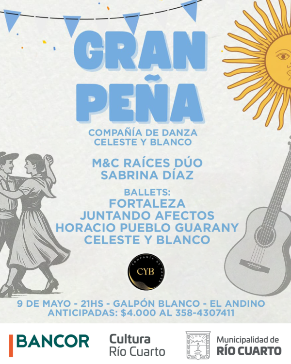 Viernes 9 de mayo. Galpón Blanco del Andino. 21hs. Anticipadas $4.000 al 3584307411.