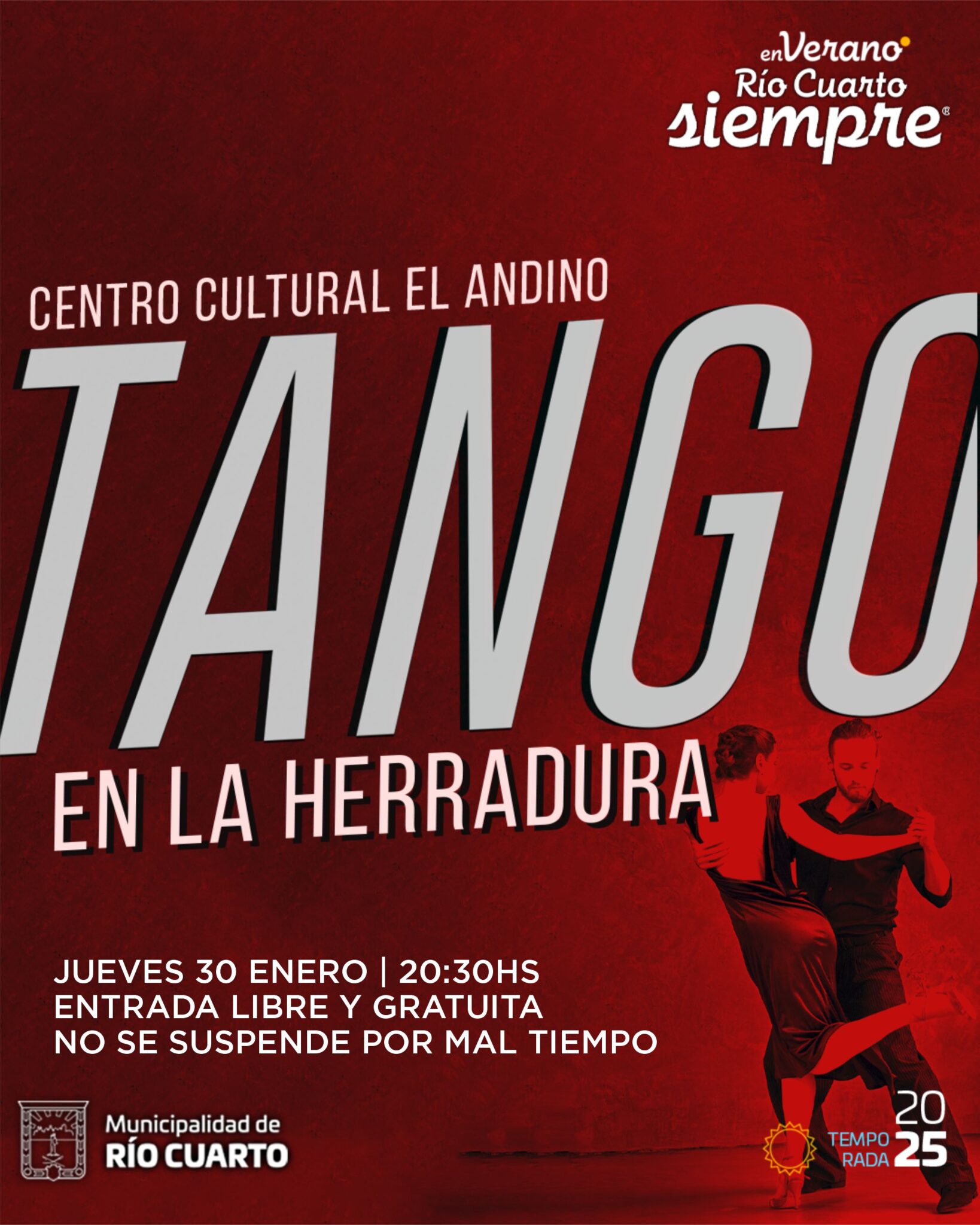 JUEVES 23 DE ENERO. 20.30HS. HERRADURA DEL ANDINO. Entrada libre y gratuita. No se suspende por mal tiempo. Vení con tu reposera!!