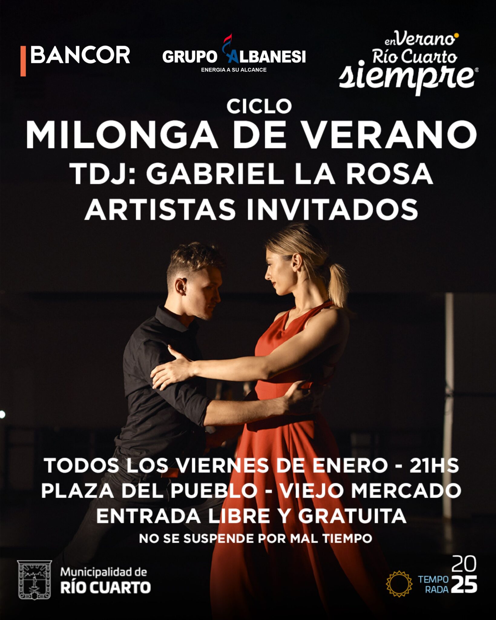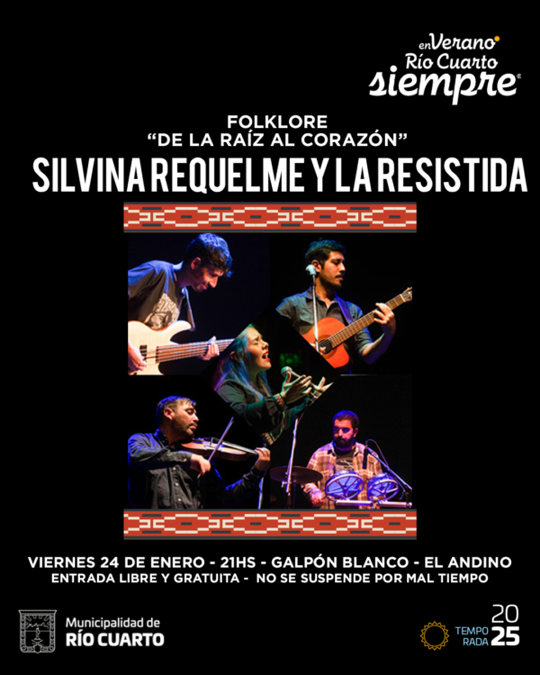 VIERNES 24 DE ENERO. 21.00HS. PLAZA DEL PUEBLO. VIEJO MERCADO. Entrada libre y gratuita. No se suspende por mal tiempo. Patio Gastronómico.