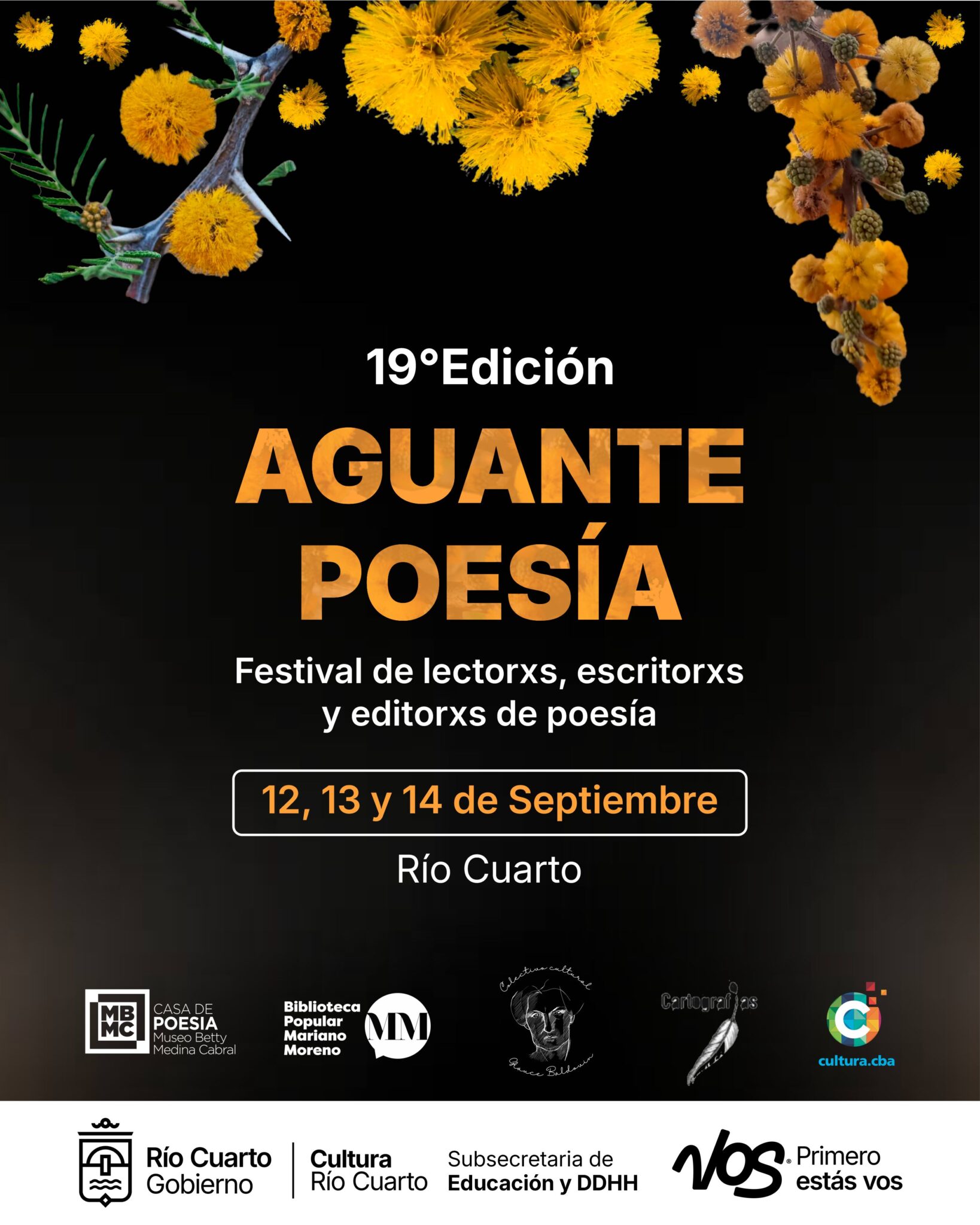 Del viernes 12 al domingo 14 de septiembre. C.C. Andino. Biblioteca Mariano Moreno Se realiza la 19ª edición del Encuentro de lectores, escritores y editores de poesía. Viernes 12 10.00 –