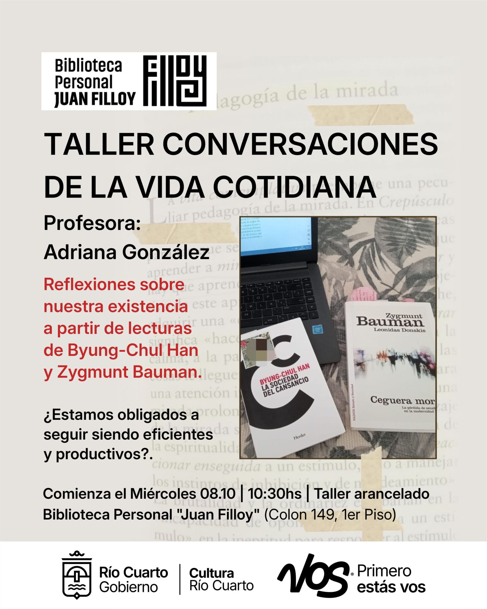 Miércoles 8 de octubre. Biblioteca Personal Juan Filloy. C.C. Trapalanda. 10.30hs. Taller arancelado.
