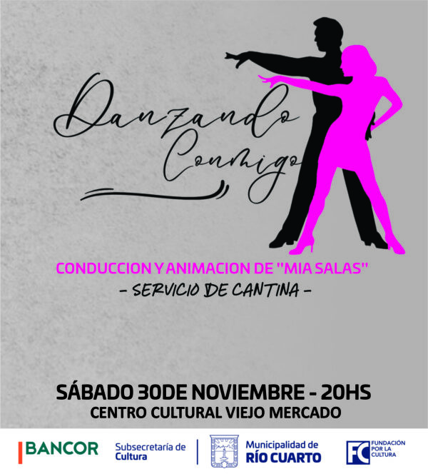 Sábado 30 de noviembre. Viejo Mercado. 20hs. Entrada gral. $7.500 Gala de fin de año de la academia local. Conducción: Mia Salas. Danzando Conmigo es una gala de fin de