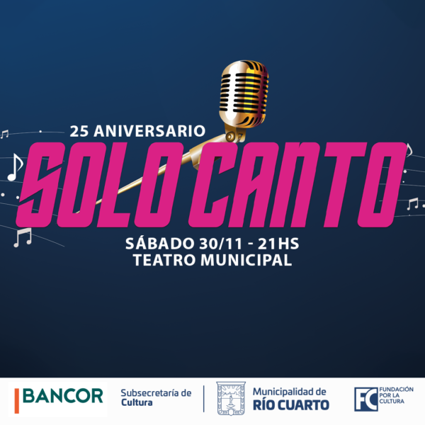 Este sábado 30 de noviembre a las 21hs. en el Teatro Municipal, con entradas a $9000-7000, se realiza el 25 Aniversario de Solo Canto, celebración del certamen de nuevos valores,